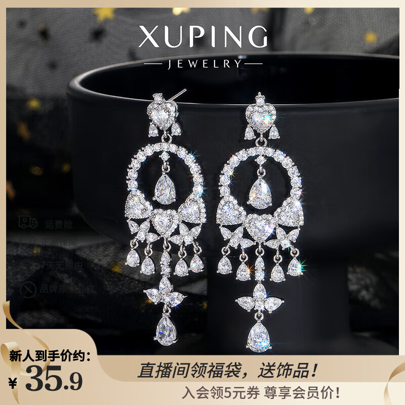 包邮 XUPING旭平首饰合金时尚梦网元素系列灵动摇曳流苏气质密镶人造石优雅耳饰 耳钉